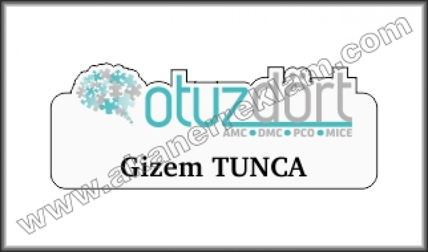 Plastik malzemeden üzerine Renkli Baskılı veya Lazer Kazıma olarak hazırlanan arkasına iğne yada mıknatıs monte edilmek suretiyle kullanılan isimlik çeşididir.