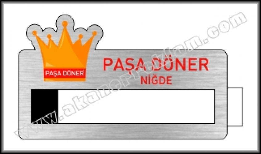 Plastik malzemeden üzerine Renkli Baskılı veya Lazer Kazıma olarak hazırlanan arkasına iğne yada mıknatıs monte edilmek suretiyle kullanılan isimlerin kullanıcı tarafından değiştirilebildiği isimlik çeşididir.
