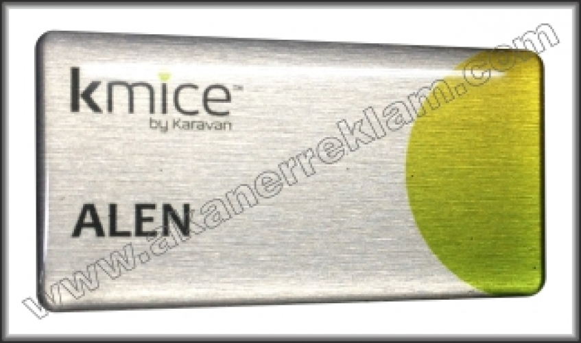 Metal veya Plastik Malzemelerden Renkli Baskılı çalışmaya Damla dökülmek suretiyle hazırlanan İğneli yada Mıknatıslı Yaka İsimlikleridir.