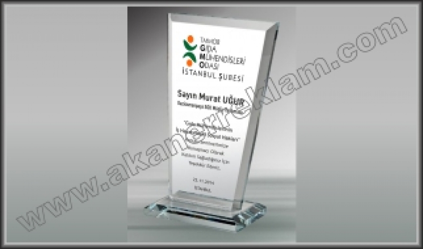 Kristal Camdan çok değişik şekillerde kesim yapılarak oluşturulan form üzerine baskının Renkli yada Lazer Kazıma yöntemleriyle Kristal yüzeyine aktarılması ile hazırlanan, isterseniz Kadife Kutulu olarak teslim alabileceğiniz plaket çeşidimizdir.
