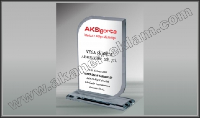Kristal Camdan çok değişik şekillerde kesim yapılarak oluşturulan form üzerine baskının Renkli yada Lazer Kazıma yöntemleriyle Kristal yüzeyine aktarılması ile hazırlanan, isterseniz Kadife Kutulu olarak teslim alabileceğiniz plaket çeşidimizdir.
