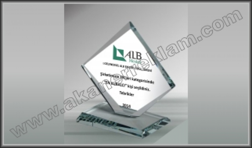 Kristal Camdan çok değişik şekillerde kesim yapılarak oluşturulan form üzerine baskının Renkli yada Lazer Kazıma yöntemleriyle Kristal yüzeyine aktarılması ile hazırlanan, isterseniz Kadife Kutulu olarak teslim alabileceğiniz plaket çeşidimizdir.