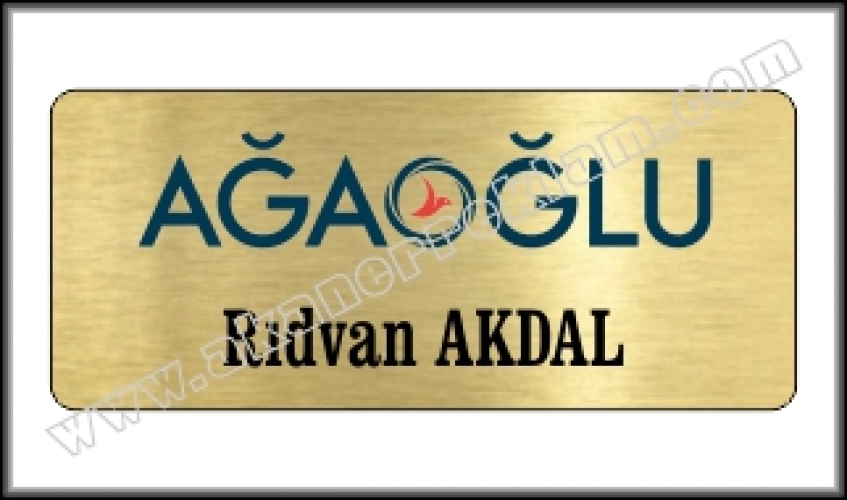 Metal Yaka İsimlikleri alt kategorisinde yer alan Fırça desenli altın görünümlü metal üzerine renkli baskılı olarak hazırlanan yaka isimliğdir. Arkasına iğne yada mıknatıs monte edilmek suretiyle kullanılan isimlik çeşididir. İstenilen ölçüde hazırlanabilir. Metal Yaka İsimlikleri yüksek adetli siparişlerinizde özel kesimli olarak da imal edilebilir.