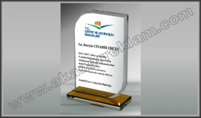 Kristal Camdan çok değişik şekillerde kesim yapılarak oluşturulan form üzerine baskının Renkli yada Lazer Kazıma yöntemleriyle Kristal yüzeyine aktarılması ile hazırlanan, isterseniz Kadife Kutulu olarak teslim alabileceğiniz plaket çeşidimizdir.