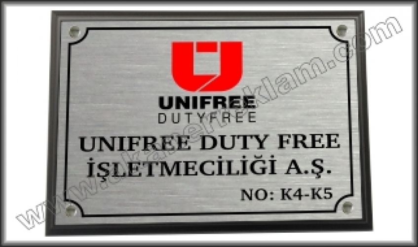 Fırçalı Altın, Fırçalı Gümüş, Parlak Altın, Parlak Gümüş, Mat Gümüş ve Beyaz gibi renkli metal levhalar üzerine istediğiniz ebatlarda baskınızın metal yüzeyine yüksek sıcaklıkta yapılması ve ahşap kaide üzerine monte edilmesi sonucu hazırlanan tabela çeşididir.
