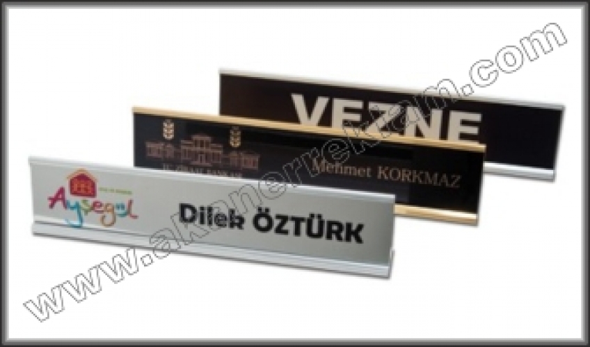 Ahşap, Kristal Cam, Metal yada Plexiglass malzemelerden değişik şekillerde imal edilmektedir. İsimler Kristal modellerde direk cam üzerine baskılı üretilebildiği gibi altın veya gümüş görünümlü metal malzemelere baskı yapılarak cam üzerine monte edilmek suretiyle de üretim yapılabilmektedir. Ahşap isimliklerde ise isimlik bölümüne isim ister Lazer Kazıma olarak isterseniz de altın veya gümüş görünümlü metal malzemelere baskı yapılarak ahşap isimlik üzerine monte edilmek suretiyle de üretim yapılabilmektedir. Metal isimlikte metal levha olarak hazırlanan isimlik Metal Masa İsimliğine isimlik üzerinde bulunan kanallardan yerleştirilir. Kullanımı ve isim değişimi çok pratiktir.