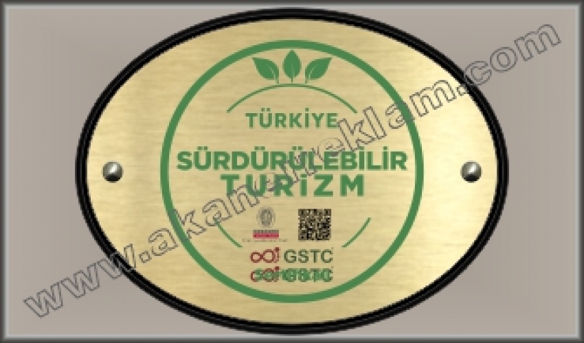 Turizm Bakanlığının belirlediği standartlarda hazırlanan SÜRDÜRÜLEBİLİR TURİZM TABELASI tüm oteller için hazırlanmaktadır. Sipariş için Sertifika Firması tarafından gönderilen QR ( Kare Kodu ) göndermeniz yeterlidir.