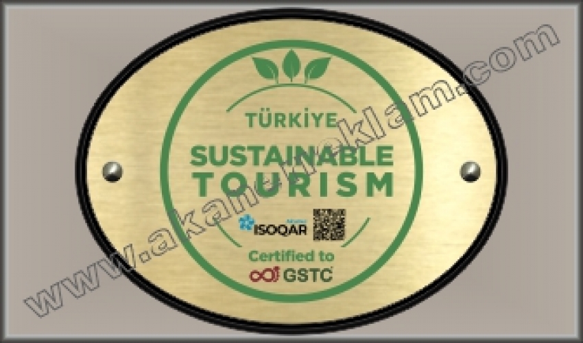 Turizm Bakanlığının belirlediği standartlarda hazırlanan SÜRDÜRÜLEBİLİR TURİZM TABELASI tüm oteller için hazırlanmaktadır. Sipariş için Sertifika Firması tarafından gönderilen QR ( Kare Kodu ) göndermeniz yeterlidir.