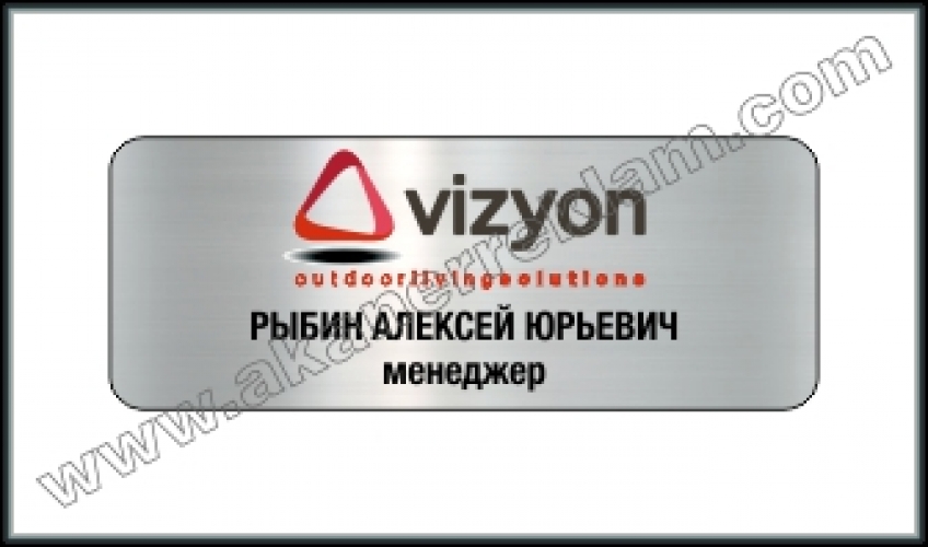 Metal Yaka İsimlikleri alt kategorisinde yer alan parlak gümüş görünümlü metal üzerine renkli baskılı olarak hazırlanan yaka isimliğdir. Arkasına iğne yada mıknatıs monte edilmek suretiyle kullanılan isimlik çeşididir. İstenilen ölçüde hazırlanabilir. Metal Yaka İsimlikleri yüksek adetli siparişlerinizde özel kesimli olarak da imal edilebilir.