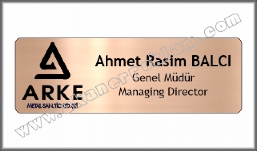 Metal Yaka İsimlikleri alt kategorisinde yer alan mat gümüş görünümlü metal üzerine renkli baskılı olarak hazırlanan yaka isimliğdir. Arkasına iğne yada mıknatıs monte edilmek suretiyle kullanılan isimlik çeşididir. İstenilen ölçüde hazırlanabilir. Metal Yaka İsimlikleri yüksek adetli siparişlerinizde özel kesimli olarak da imal edilebilir.