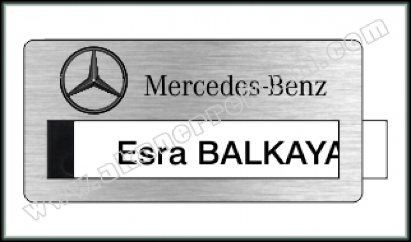 Metal Yaka İsimlikleri alt kategorisinde yer alan fırçalı gümüş görünümlü metal üzerine renkli baskılı olarak hazırlanan isim değişikliği yapabildiğiniz yaka isimliği modelidir. Arkasına iğne yada mıknatıs monte edilmek suretiyle kullanılmaktadır. Standart ebatları bulunmaktadır. Metal Yaka İsimlikleri yüksek adetli siparişlerinizde özel kesimli olarak da imal edilebilir. Personel değişiminin fazla olduğu işletmelerin tercih ettiği yaka isimliği modelidir.
