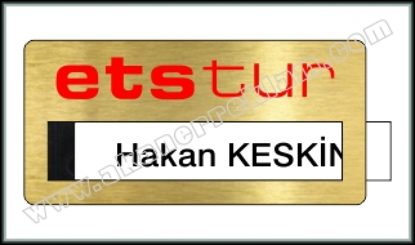 Metal Yaka İsimlikleri alt kategorisinde yer alan fırçalı altın görünümlü metal üzerine renkli baskılı olarak hazırlanan isim değişikliği yapabildiğiniz yaka isimliği modelidir. Arkasına iğne yada mıknatıs monte edilmek suretiyle kullanılmaktadır. Standart ebatları bulunmaktadır. Metal Yaka İsimlikleri yüksek adetli siparişlerinizde özel kesimli olarak da imal edilebilir. Personel değişiminin fazla olduğu işletmelerin tercih ettiği yaka isimliği modelidir.