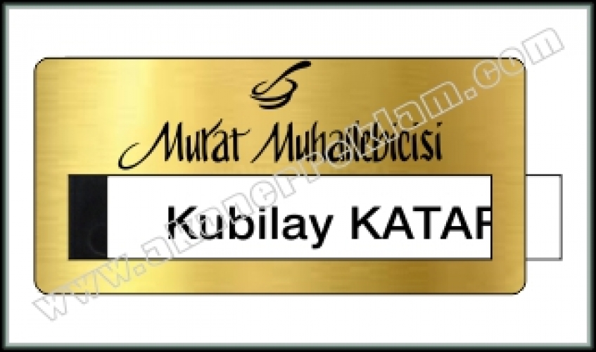 Metal Yaka İsimlikleri alt kategorisinde yer alan parlak altın görünümlü metal üzerine renkli baskılı olarak hazırlanan isim değişikliği yapabildiğiniz yaka isimliği modelidir. Arkasına iğne yada mıknatıs monte edilmek suretiyle kullanılmaktadır. Standart ebatları bulunmaktadır. Metal Yaka İsimlikleri yüksek adetli siparişlerinizde özel kesimli olarak da imal edilebilir. Personel değişiminin fazla olduğu işletmelerin tercih ettiği yaka isimliği modelidir.