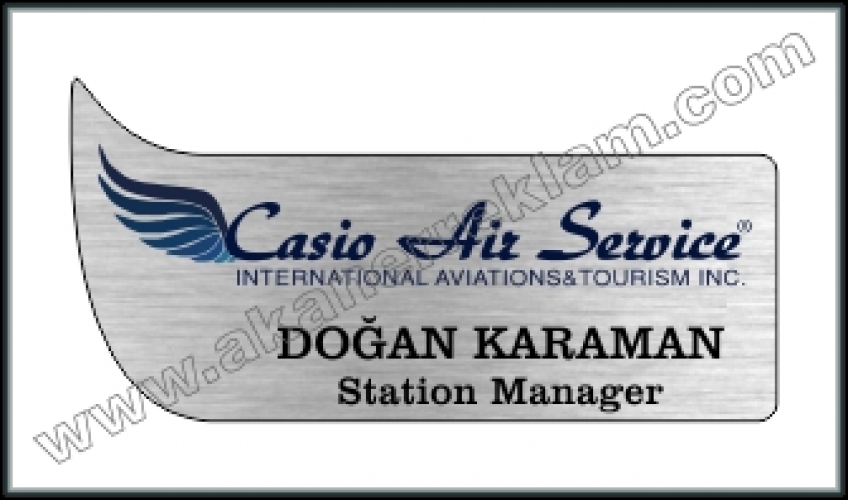 Plastik Yaka İsimlikleri alt kategorisinde yer alan fırçalı gümüş metal görünümlü özel plastik malzemeden üzerine renkli baskılı olarak hazırlanan iyaka isimliği modelidir. Malzeme yapı ititbariyle özel kesime uygundur. Bu nedenle az adetli siparişlerinizde de özel kesimli yaka isimliği hazırlanabilmektedir. Arkasına iğne yada mıknatıs monte edilmek suretiyle kullanılmaktadır.